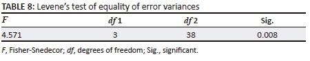 Porkess (2005) defines Levene's test of equality as an inferential statistic used to assess the equality of variance on different samples. In Levene's test of equality, the statistical procedure assumes that variances of the populations from which different samples are drawn are equal. As a result, the findings in Table 8 show that the obtained similarities between the variances in the samples for companies A and B at p-value 0.008 have occurred. They are below the statistical standard value of 0.05.