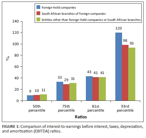 RESULTS: The results showed that the mean interest-to-earnings before interest, taxes, depreciation, and amortisation (EBITDA) ratio for certain foreign-owned entities differed significantly from that of domestically owned entities.