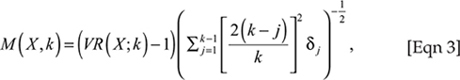 . In stage 2, the MV(X, ki) statistic obtained from the bootstrap sample is used to calculate MV*as follows: MV* ≡ MV(X*, ki). During stage 3, the first two stages are repeated enough times to form a bootstrap distribution of the test statistic
