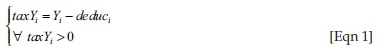Below follows a summary of the steps in the micro-simulation model to calculate the potential tax liability. First, it calculates the taxable income (taxY) for every household (i), defined as the difference between gross income (Yi) and deductions (deduci):