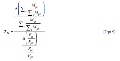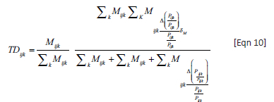 is the import demand function for product i from the related trading partner; Mijk is the normal rate of import demand of the given products
