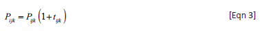 Given free trade conditions, with adjustments to ad valorem tariff, the domestic price of product i in country j from country k will change as follows: