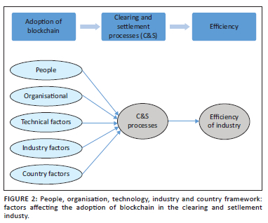 RESULTS: This study identifies People, Organisation, Technology, Industry and Country (POTIC) as factors important in influencing blockchain technology adoption in South Africa. The study expands and contributes to traditional frameworks for adopting blockchain technology in the South African clearing and settlement industry by adding five factors: trust, load shedding, unemployment/layoffs, current infrastructure, useful life and educational campaigns
