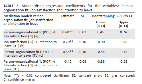 The mediating role of job satisfaction in the relationship between person-organisation fit and intention to leave