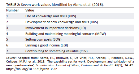 Abma, F.I., Brouwer, S., De Vries, H.J., Arends, I., Robroek, S.J.W., Cuijpers, M.P.J. et al., 2016, 'The capability set for work: Development and validation of a new questionnaire', Scandinavian Journal of Work, Environment & Health 42(1), 34-42. https://doi.org/10.5271/sjweh.3532        [ Links ]