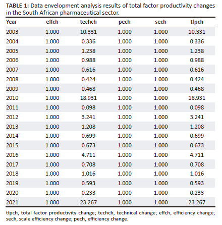 The data envelopment analysis (DEA) has been widely used in the studies of productivity and efficiency studies to analyse changes in TFP. Cooper, Seiford and Zhu (2011) describe the DEA as a 'data-oriented' mathematical programming technique used for evaluating the performance of a set of peer entities called decision-making units (DMU). The DEA involves using linear programming methods to construct a non-parametric piecewise surface (or frontier) over the data to calculate efficiency in relation to this surface (Coelli et al. 2005). The DEA determines efficient levels of inputs and outputs for the organisation under evaluation by computing a scalar measure of efficiency. This study used the Malmquist total factor productivity (MTFP) index to examine the factors that influence TFP changes in the pharmaceutical industry because it allows us to assess how efficiency and production technology evolve. The MTFP index makes it possible to measure the improvement or decline in efficiency and the underlying production technology. This index provides a dynamic process for analysing changes in efficiency and productivity, and it determines the underlying factors driving these changes by decomposing the Malmquist TFP index. The key components of productivity change include technical change, technical efficiency change and scale efficiency change (O'Donnell 2012).