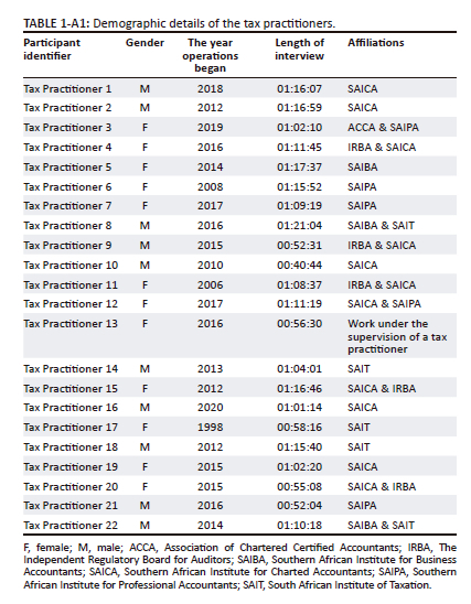 SETTING: A combination of face-to-face and online interviews took place with tax practitioners who service SBOs situated in the Gauteng province of South Africa.