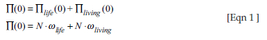 Our 'hybrid' retirement strategy introduces another dimension, an initial allocation in a life annuity. We consider the case when 50% of a retiree's initial investment is invested in a life annuity and the remaining 50% invested in a living annuity, that is. ωlife = 0.5 and ωliving = 0.5.