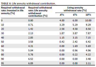 RESULTS: The success rate of all 'hybrid' portfolio compositions is significantly greater than the success rate of a pure living annuity when the withdrawal rate is less than 8%