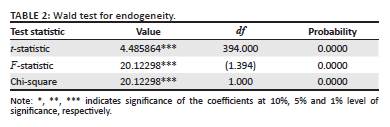 The results presented in Table 2 show that both the t-statistic and the F-statistic are significant at the 1% level. This, therefore, suggests that there is evidence of endogeneity in the model. This thus provides support for the estimation of the GMM model.