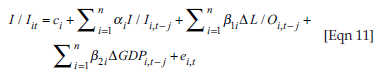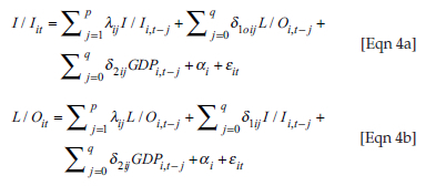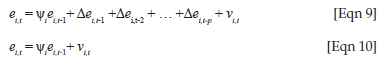 are the long-run coefficients and ηit is a stationary process. The long-run coefficients defined by θi are constrained to be the same for all cross-sectional units, and the error correction term is computed as: