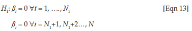 ). Under the alternative hypotheses, we assume the existence of N1 < N individual processes with no causality from x to y, while the remaining process N2 = N - N1 process has causality, that is: