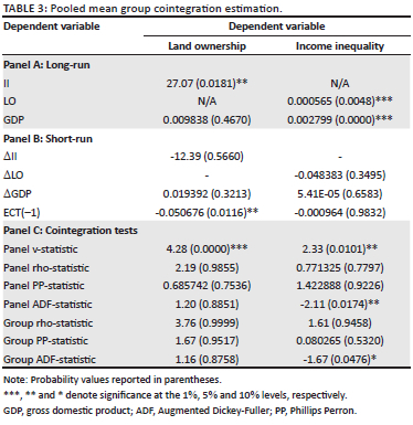 Notably, few quantitative studies have been conducted on the impact of land inequality on economic development, with most studies focussing on the impact of land inequality on economic growth (Cipollina et al. 2018; Deininger & Olinto 1999; Deininger & Squire 1998; Erickson & Vollrath 2004; Fort 2007; Frankema 2005). However, only the studies by Carter (2000), Wegerif and Guereña (2020) and Qasim, Pervaiz and Chaudhary (2020) directly connect land inequality to income inequality. However, while Carter (2000) focusses on Africa, Asia, Latin America, Eastern Europe and Organisation for Economic Co-operation and Development (OECD) countries, the author acknowledges that Africa has the weakest dataset. None of the 10 African countries included in the study had more than two data points. On the other hand, the study by Wegerif and Guereña (2020) is restricted to the trend of land policy, leaving only the study by Qasim et al. (2020) that empirically investigates the relationship between land inequality, poverty and income inequality. We discuss these studies as follows: