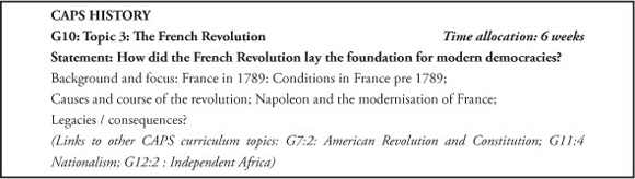 G10: Topic 3: How did the French Revolution lay the foundation for modern democracies? This states the issue in terms of a knowledge of "the foundations of modern democracies" but the historical content under consideration is limited to the history of the French Revolution itself. It would therefore not be fair to ask questions or assess students in terms of the rubric: