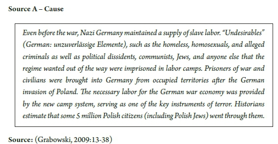 In this section, the practical operationalization of the HISBAM will be illustrated using one of the categorizations of history. Economic history was chosen because it was found to be underutilized in the scrutinized history examination papers. Each source will also be "tagged" as depicting the cause, course or consequence of World War 2 on the Nazi German economy.