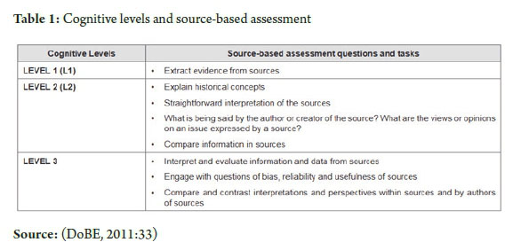 In source-based assessment, students use sources to develop judgments about the past. Due to the need to assess a range of sources, both textual and visual, and integrate them to produce meaningful solutions to historical issues, this inductive approach requires higherorder thinking (Barton, 2018:1-11).