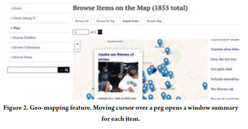 Recently, a number of history and library science educators have employed Omeka for engaging students with archives in different ways. Most have asked students to submit archival items of pre-selected texts, photographs, and object images into existing platforms with commentary, collate student work, or curate exhibitions using pre-submitted 'items.28For Joburg21, students were the authors of the sources in a custom-made digital archive with a mandate to document their own experience of the present historical moment in different ways and to render these sources identifiable through Dublin Core metadata. 29