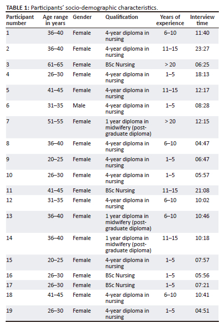 Only qualified midwives and professional nurses who were permanent employees in the labour ward unit were included in this study. By an iterative process, the first author found that there were no new emerging themes after having interviewed 15 participants. A decision was taken to continue with the rest of the interviews to ensure validity.