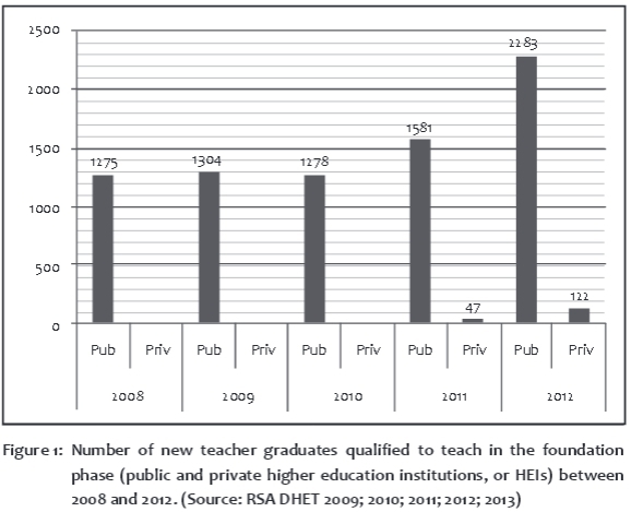 While it is encouraging to see that foundation phase teacher education is growing in the country, two questions must be asked: Is it growing enough; and is it growing in suitable directions? A case in point is illustrated in Table 1: