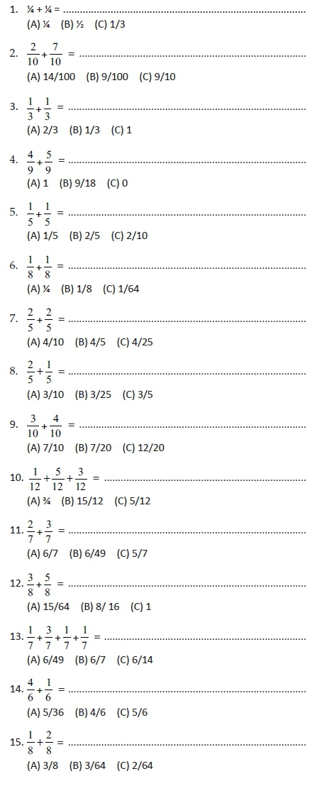 Instructions: Simplify the following fractions on the spaces provided and encircle the correct option.