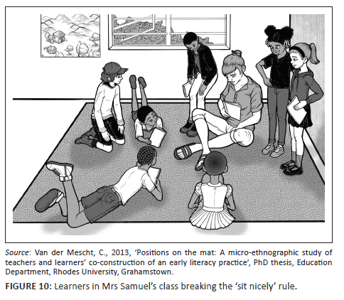 Van der Mescht, C., 2013, 'Positions on the mat: A micro-ethnographic study of teachers and learners' co-construction of an early literacy practice', PhD thesis, Education Department, Rhodes University, Grahamstown. [ Links ]