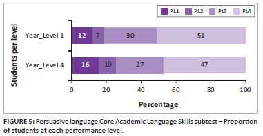 Drawing on the Rasch measures and the coding frameworks for the assessment, we were able to define four performance levels for the persuasive languages (CALS) subtest (Table 2).
