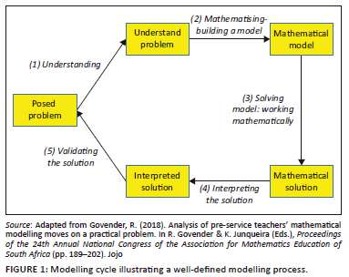 The design and execution of this research study are underpinned by the modelling competency framework assimilated by Blum and Kaiser (1997, p. 9). In terms of this study, mathematical modelling competency is viewed as the ability to criss-cross each of the respective phases, as articulated in Figure 1 which constitutes the modelling process, when solving a given problem (Govender, 2018).