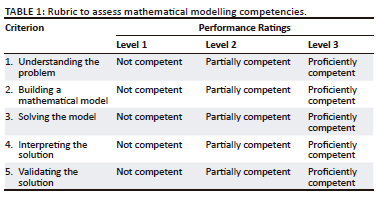 This theoretical framework formed the basis for the deductive qualitative analysis used in this study. The deductive qualitative analysis thus was conducted by constructing an analytical framework using the literature on mathematical modelling and the theoretical framework on mathematical modelling competencies as articulated by Blum and Kaiser (1997), as cited in Maaß (2006). To facilitate the construction of the analytical framework in the form of a rubric, an analytical rubric template specific to this study was used, as shown in Table 1.