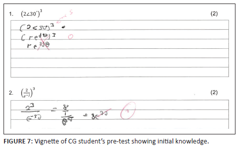 Although the CG student got the correct answer in both tests, the concern is the change in the student's correct procedural approach used during the pre-test.