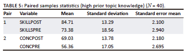 The paired samples statistics for the high prior topic knowledge group is presented in Tables 5, 6 and 7.