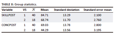 A comparison of the statistics of the new analysis with the previous analysis shows that for the low prior knowledge group there were slight increases for both SKILL and CONC variables. A similar scenario holds for the high prior knowledge group. The exception being a small decrease for the SKILLPOST variable. Since there is no major difference when the analysis is done without the data where less retrieval practice was done, one can conclude that the analysis was not conflated to the extent that all previous arguments based on the original analysis must be discarded.