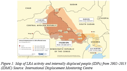 Internal Displacement Monitoring Centre. 2013. LRA-related displacement in central Africa. Norwegian Refugee Council. Retrieved from https://www.intemal-displacement.org/sites/default/files/publications/documents/201309-af-lra-overview-en.pdf [Accessed 20 February 2022]. [ Links ]