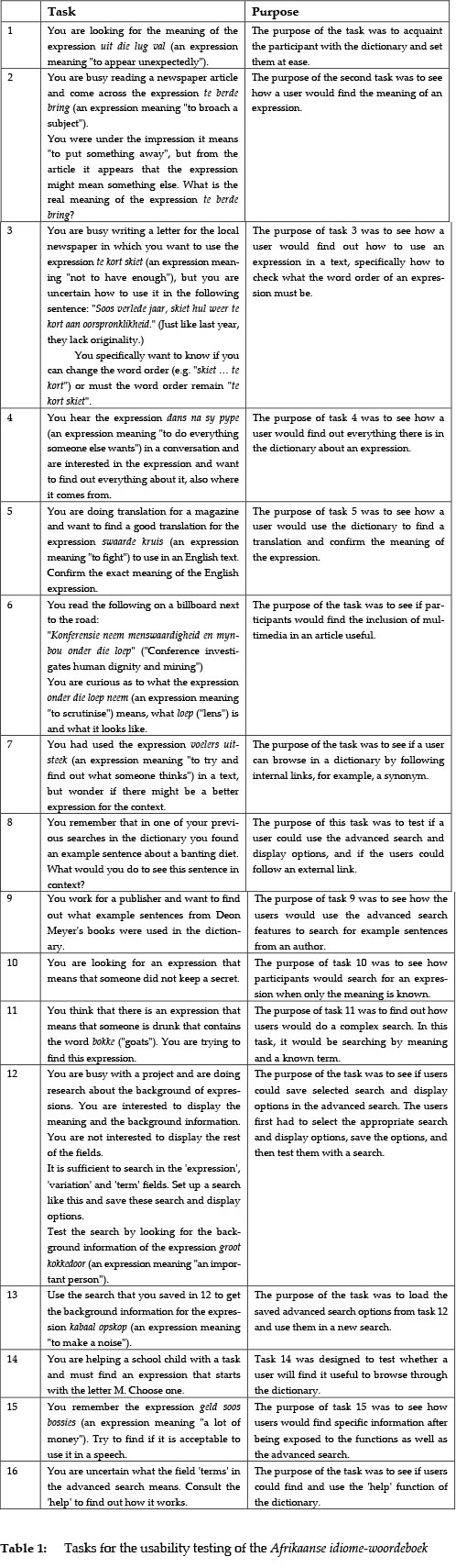 A Usability Evaluation of the Prototype Afrikaanse idiome-woordeboek*