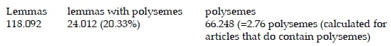 The relative occurrence of polysemes in the articles of verbs is even bigger if one looks at lemmas with a higher number of polysemes