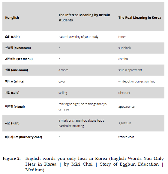 Choi, M. 2017. English Words You Only Hear in Korea. Available at: https://medium.com/story-of-eggbun-education/english-words-you-only-hear-in-korea-5bd3eed8f9c3.