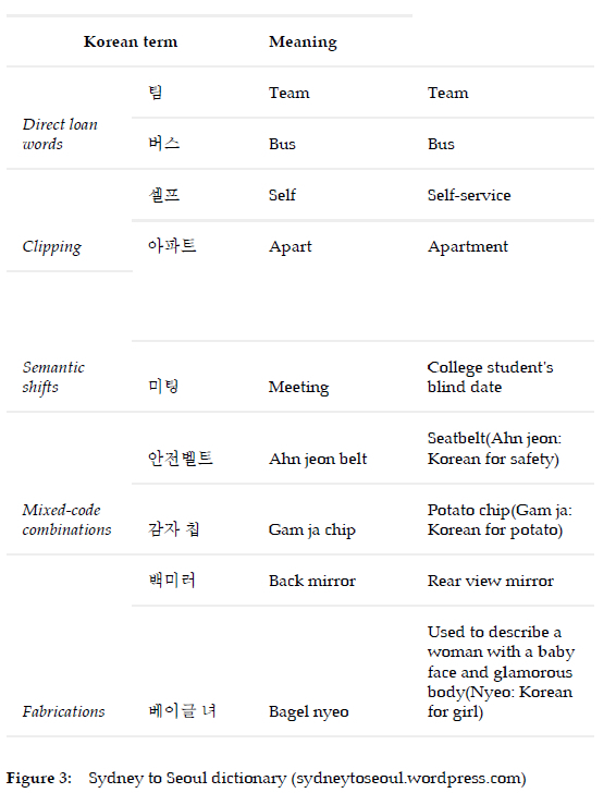 Z. 2020. SydneytoSeoul: A Self-Study Korean Language Blog. Available at: https://sydneytoseoul.wordpress.com/2013/08/02/lexical-borrowings-from-english-in-konglish/.