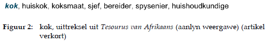 Die woord huiskok kan heel moontlik eerder as 'n subordinaat van die woord kok in die hiponimiese verhouding tussen die leksikale items beskou word. In beide artikels word nie rekenskap gegee van verskille in die sinoniemlysting nie en onvoldoende gebruiksleiding word verskaf. Deur te verwys na opleidingsverskille of die moontlike plek waar die persone werk, byvoorbeeld 'n sjef in 'n hotel of restaurant en 'n koksmaat op 'n skip, kan meer konteks aan die gebruiker verskaf word.