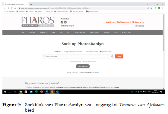 Fuertes-Olivera en Tarp (2020: 257) se waarneming is dat leksikografiese produkte nie meer woordeboeke par excellence is nie, maar wel leksikografiese data wat óf in woordeboekformaat óf deur 'n verskeidenheid van hulpmiddels, platforms en dienste aan 'n gebruiker verskaf word. Hulle beskryf die funksionaliteite van 'n digitale skryfassistent as voorbeeld van so 'n hulpmiddel en hoe 'n databasis daarvoor saamgestel kan word (Fuertes-Olivera en Tarp 2020: 257). TA beskik reeds oor 'n elektroniese databasis en kan moontlik vir 'n digitale skryfassistent in Afrikaans aangepas word. TA vorm reeds deel van die aanlyn platform vir Pharos se leksikografiese produkte en is dus goed geposisioneer om 'n sekondêre produk van die tesourus te skep, wat aansluit by die idee van volhoubare leksikografie (Colman 2016: 141).