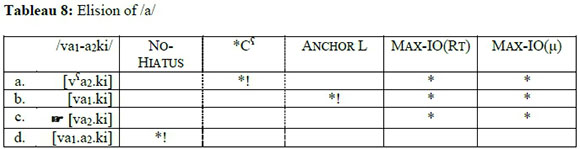 The interaction of these constraints is illustrated in Tableau 3 below.