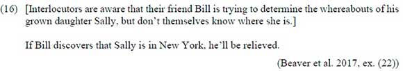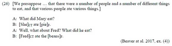 6 (17) models after the utterances in Beaver et al. (2017, ex. (18)).