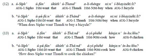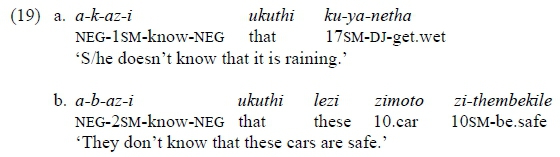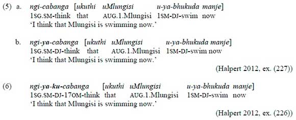 3 Halpert (2012) also shows that if ku is present, the disjoint form has to be used, while with subjunctive clauses, ku is only possible if the complementizer ukuthi is present.