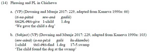 Patterns of PL differ between Xitsonga DPs that appear in the post-verbal position and those that appear in the pre-verbal position. In the pre-verbal position, DPs are phrased on their own, which means that the PL of the final prosodic word of the phonological phrase (i.e. the DP) occurs. As shown above, a similar type of asymmetry has been reported for Chichewa (Kanerva 1990a, Downing and Mtenje 2017) where the pre-verbal subject DP forms a prosodic unit separately from the rest of the verb phrase but not DPs in post-verbal non-dislocated position. Xitsonga DPs show a comparable pattern to Chichewa, because the final prosodic word of the pre-verbal phonological phrase displays PL.