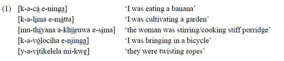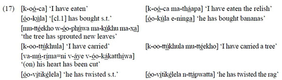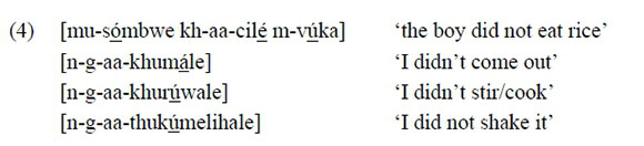 9 In the past relative tense, the object marker emerges as a toneless allomorph (see Patin 2010: 196).