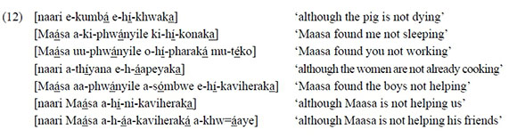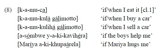 Evidence for eurythmic constraints in the distribution of H%s in Shingazidja comes from examples such as (16).12