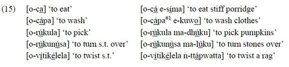 In (1), the shift of the tone leads to the loss of the first lexical tone of the noun mapésa 'money', due to an OCP constraint that deletes every even-numbered tone in a Ma-φ.