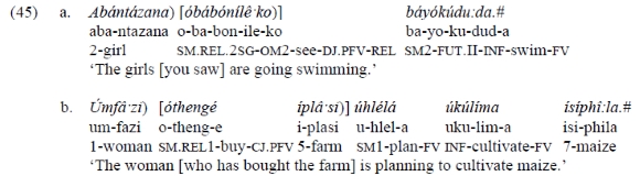 20 In addition, length seems to be far less prominent (or even absent) as a marker of the left and right boundaries of relative clauses in Sindebele.