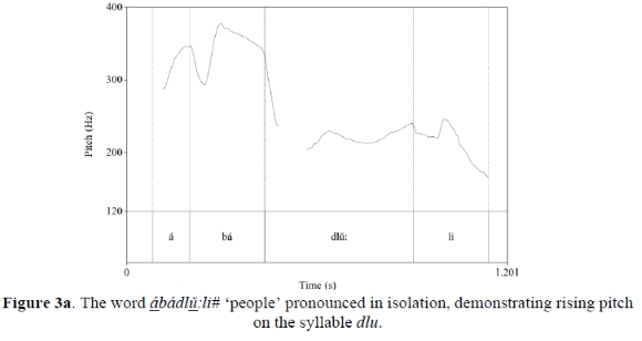 expected to have no PUL at all, and the fact that ábá:nyé 'some' has the longest PUL in the whole utterance points to the fact that this word is the one emphasized (see Section 3.2 for discussion on ază:nge).