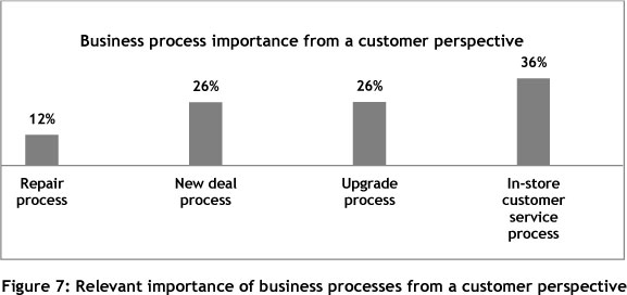These processes may be mapped and problems surrounding the processes documented. For the purpose of this paper only one of the above-mentioned processes will be analysed and improved. The process chosen for this paper is the In-store customer service process, due to the large number of complaints received in this area. While mapping the process, the performance of the process should also be taken into account. Understanding process performance from a customer perspective is vital for the development of the company- specific framework. Process performance from the technical perspective is also important, and can sometimes differ substantially from the perspective of the customer. The current business processes of Company A are designed from the technical perspective. The goal of the framework is to link the two perspectives to do the technical redesign of business processes while considering the perspective of the customer. The technical performance of the repair process may be measured by defining Key Performance Indicators (KPIs) for the process that may be associated with one of the customer requirements. The KPIs should be specified by the design team. KPIs are specified for the repair process, based on the business objectives of enhancing customer satisfaction with regard to a specific customer requirement. Measuring the KPI will give an indication whether or not the process satisfies the specific customer requirement. The KPIs serve as a technical evaluation for the repair process. For the purpose of framework validation, the assumption is made that improving the specified KPI will lead to the desired outcome of increased customer satisfaction. The assumption is tested in Stage Seven with the aid of simulation modelling. The in-store customer service process map, existing problems and identified process KPIs are discussed in the next sections.