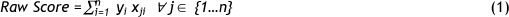The calculation of the 'Raw Score' is given by equation (1):