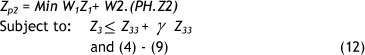 Solution Approach 1. The weights of objective Z1 and Z2 are specified with W1 and W2 as follows: